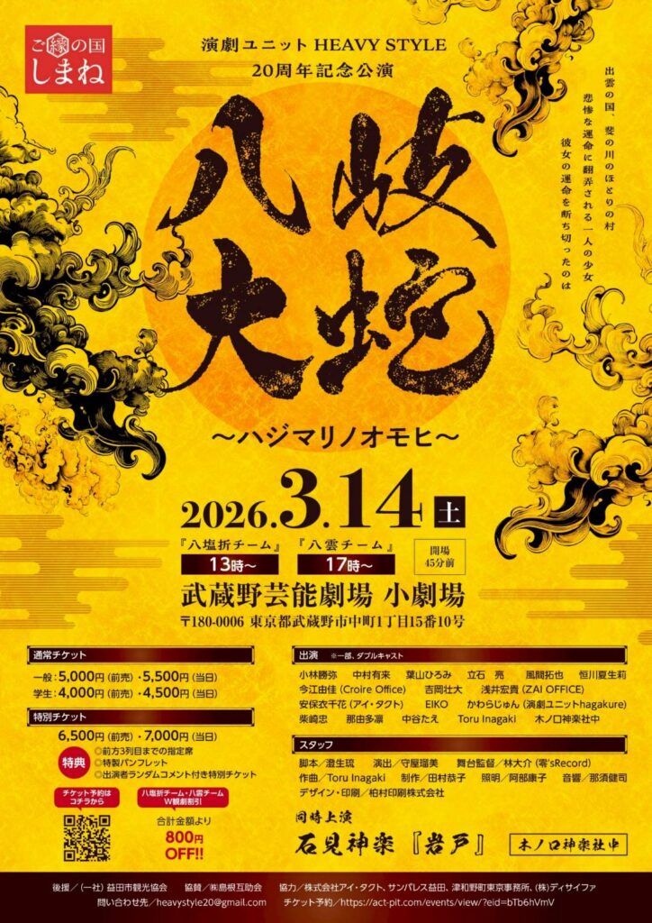 「HEAVY STYLE」20周年記念公演『八岐大蛇~ハジマリノオモヒ~』、弊社所属の 中谷たえ が主宰と脚本を務めます。
